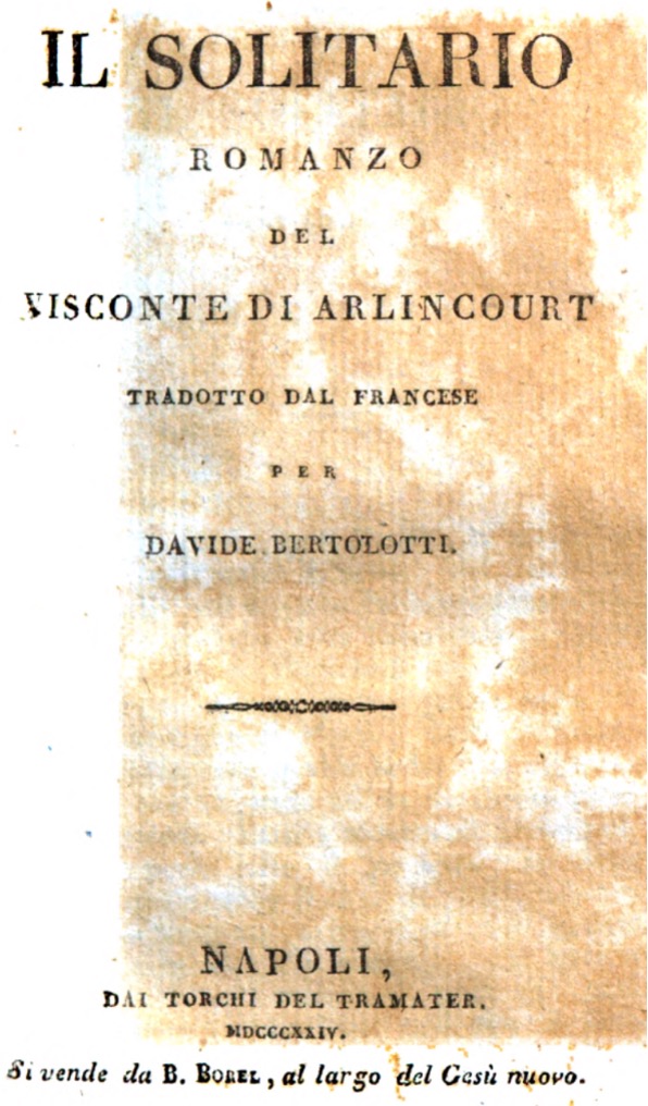 - Charles Victor Prévôt, vicomte d'Arlincourt [trad. it. Davide Bertolotti],
